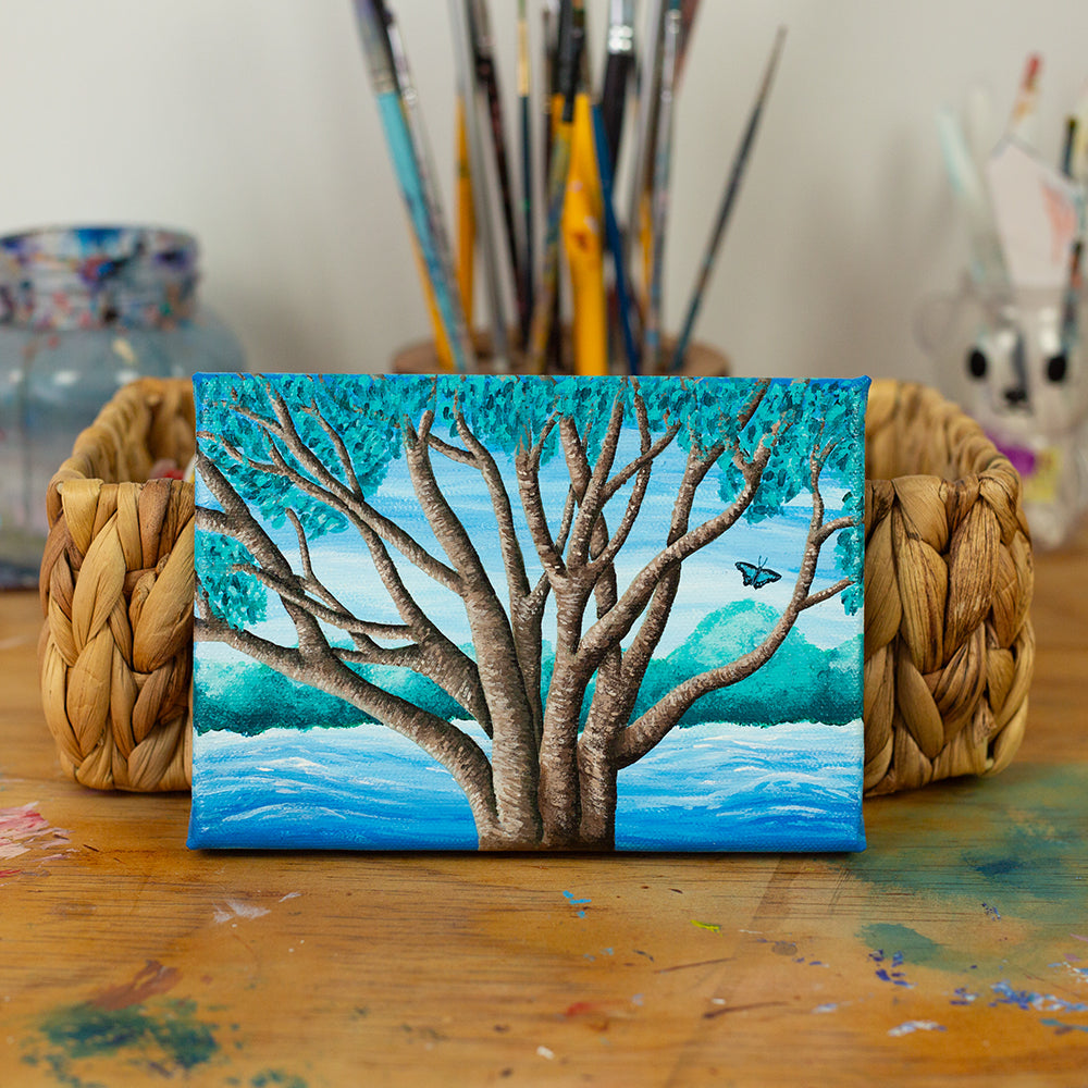 Trees endure storms, bend with the wind, and still reach toward the sky. I wanted to capture that feeling—the peaceful yet unwavering presence of nature. This piece reminds me that strength doesn’t have to be loud; it can be steady, enduring, and filled with quiet determination. Watch the making of this painting here.